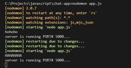 다음과 같이 js파일을 수정하고 저장하면 자동으로 서버가 재실행된다